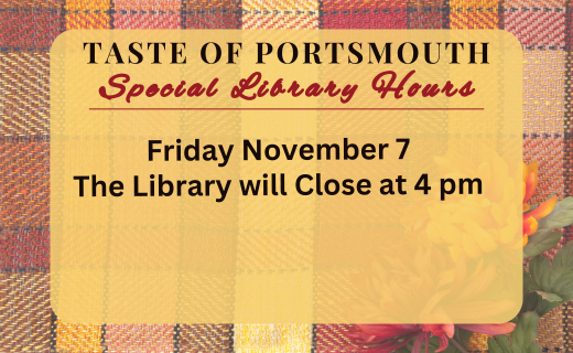 The Library will close at 4 pm on Friday November 7th so that we can prepare the space for our annual fundraiser The Taste of Portsmouth